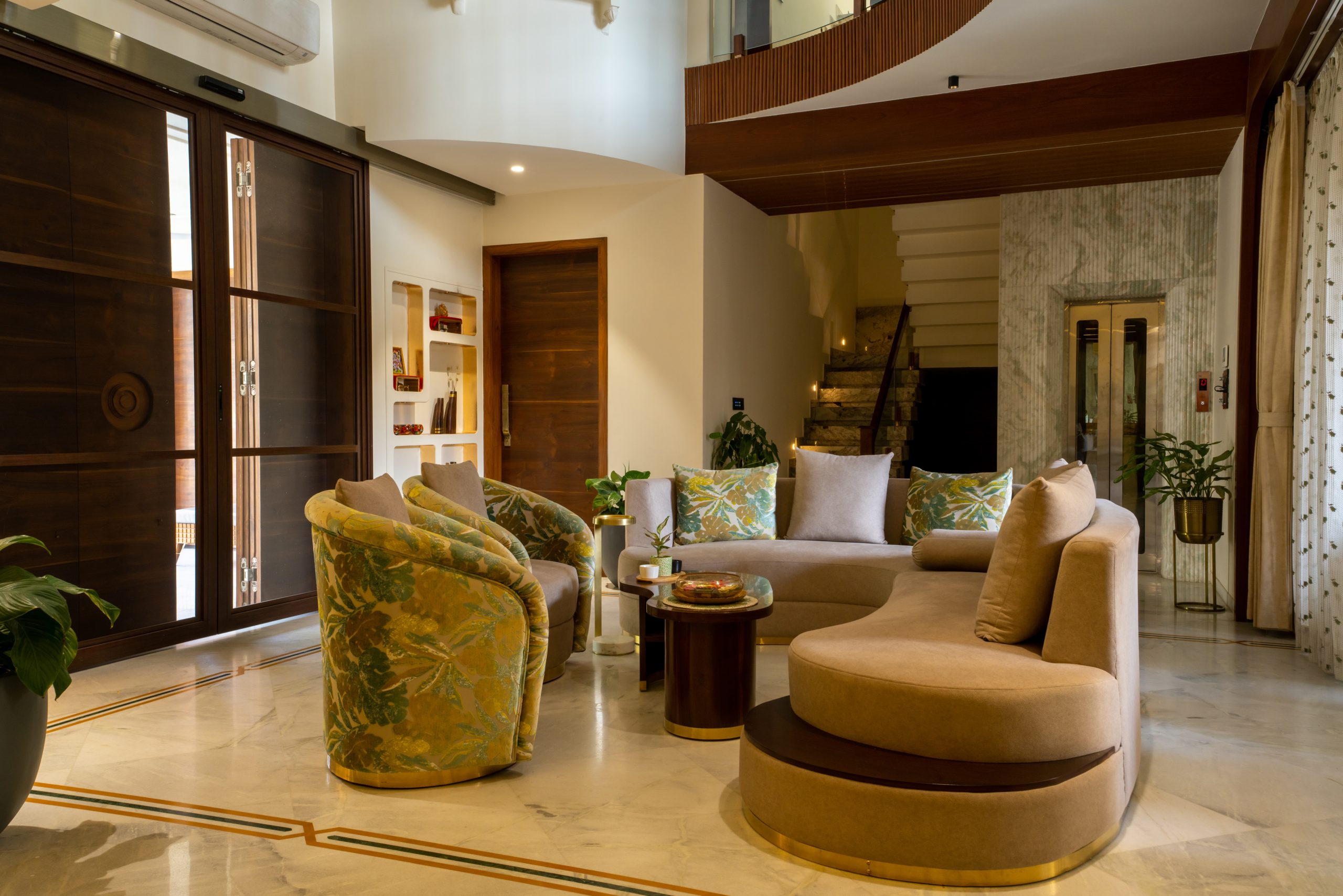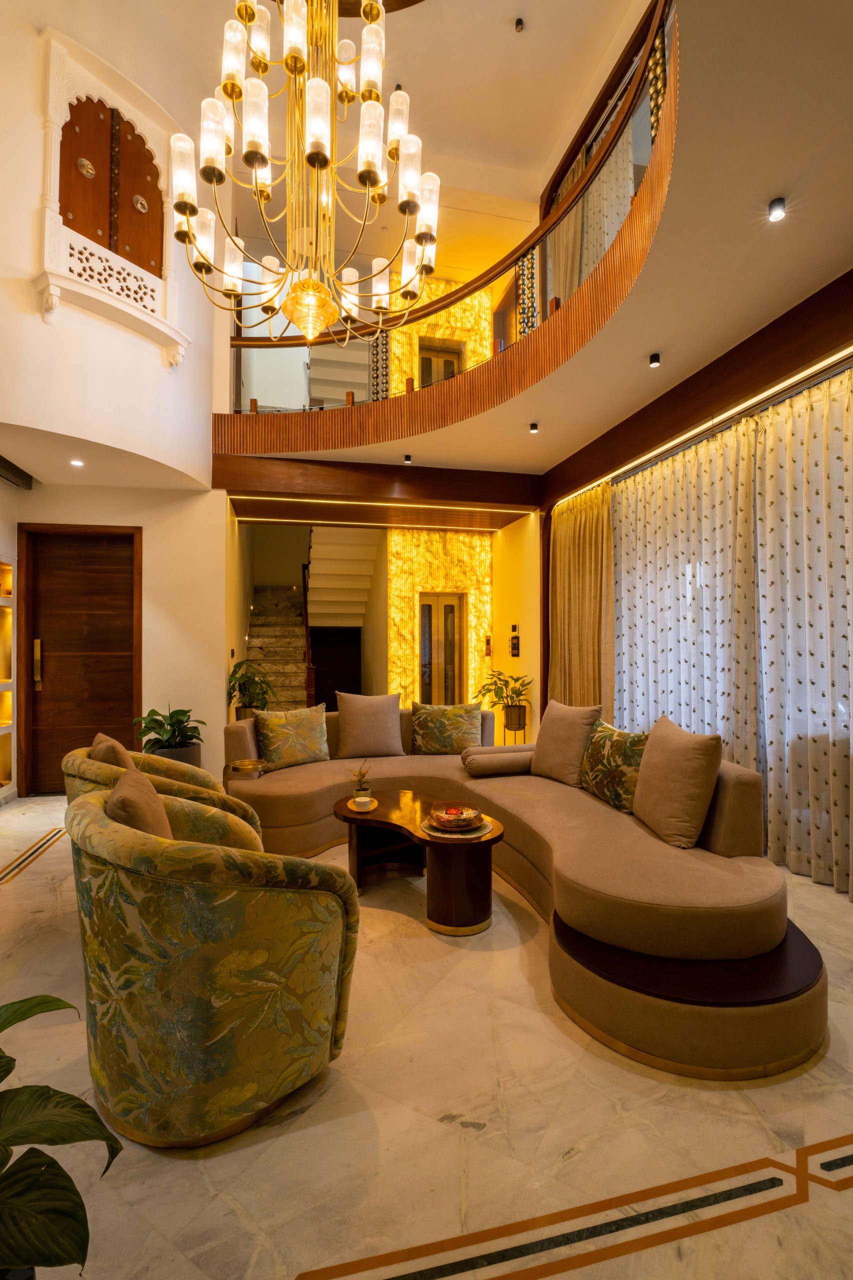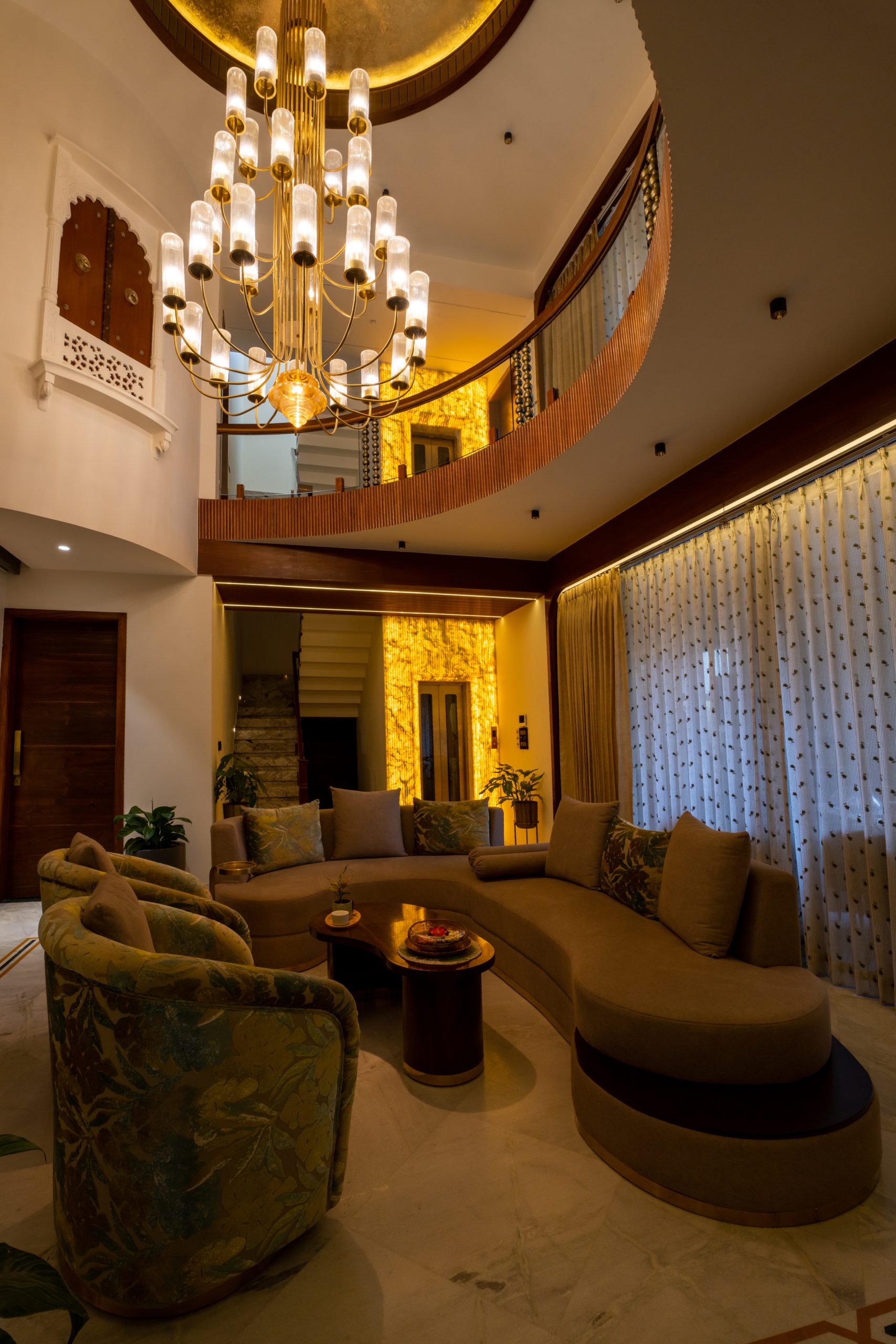 Step into this stunning residential house, where bold and vibrant colours take centre stage, infusing each room with energy and character. The ample use of large windows allows the warm sunlight to flood the space, creating a bright and inviting atmosphere. The metallic furniture adds a contemporary flair, while longer furniture pieces with wooden tones provide a sense of elegance and comfort. The incorporation of natural rattan, stones, and marbles as decor elements adds a touch of organic beauty and texture. Bright illuminating lights throughout the house accentuate the vibrant colours and bring the space to life. Inspired by traditional day homes, this modern interpretation combines timeless elements with a fresh and sophisticated aesthetic, creating a truly unique and captivating residential experience.